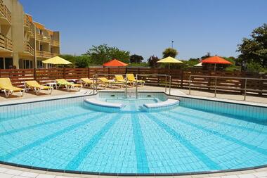 Les clients de l'hotel de la pointe de mousterlin sont également invités à utiliser une piscine et un restaurant de l'hôtel.